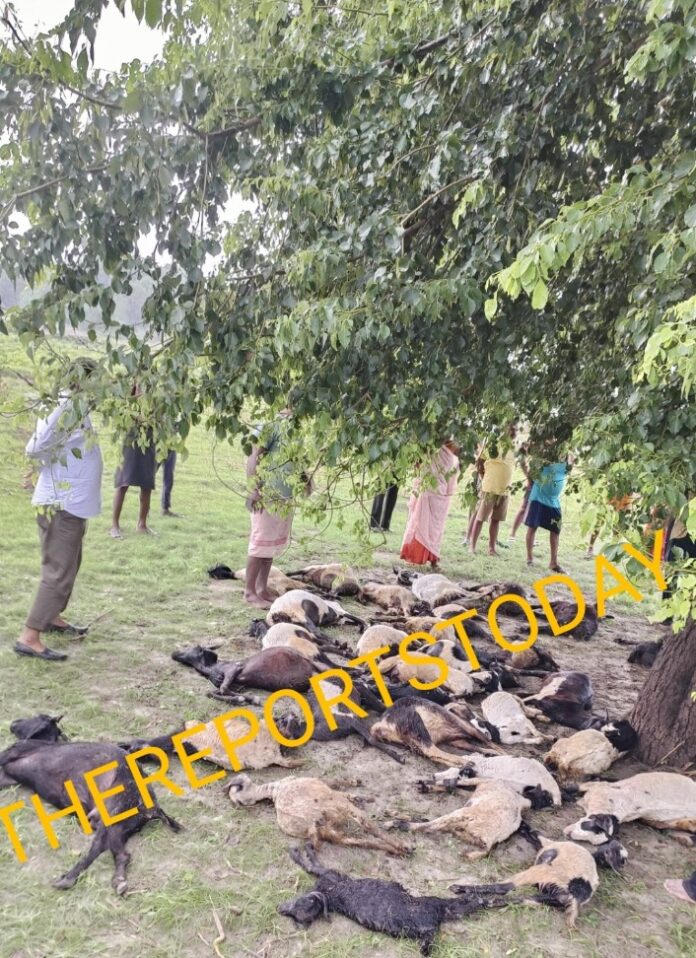 तभी अचानक गरज तडक के साथ आकाशीय बिजली गिरने से बुजुर्ग महिला रामरती उसकी चपेट में आ गई और मौके पर ही झुलस कर उनकी मौत हो गई जबकि राम सांवरी एवं धनपति उनसे कुछ दूरी पर थी लेकिन उनकी लगभग 40 बकरियां पेड़ के नीचे थी वह झुलस गई और उनकी मौके पर ही मौत हो गई घटना की जानकारी होते ही मौके पर क्षेत्रीय लेखपाल एवं थाना प्रभारी गदागंज बालेंद्र गौतम मौके पर पहुंचे घटना के बाद लोगों का मजमा लग गया परिजनों का रो-रो कर बुरा हाल है थाना प्रभारी गदागंज बालेंद्र गौतम ने बताया कि आकाशीय बिजली गिरने से बुजुर्ग महिला की मौत हुई है सबको कब्जे में लेकर पीएम के लिए भेजा जा रहा है