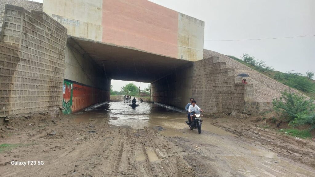 मौदहा (हमीरपुर) मौदहा क्षेत्र में सड़क क्रासिंगों पर बने अण्डर पास में भरा पानी राहगिरों के लिए बना परेशानी का सबब l मौदहा कपसा मार्ग से होकर गुजरने वाली अर्जुन सहाय परियोजना नहर में ग्राम कपसा के पास बने अण्डर पास में