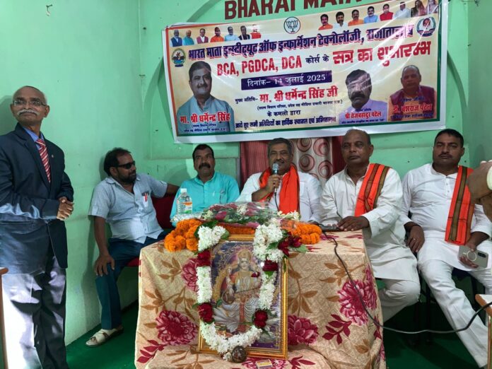 राजातालाब स्थित भारत माता इंस्टिट्यूट ऑफ़ इन्फ़ॉर्मेशन टेक्नोलॉजी में बीसीए, पीजीडीसीए एवं डीसीए कोर्स के नए सत्र 25-26 का शुभारंभ श्रावण मास के पहले सोमवार को बतौर मुख्य अतिथि एमएलसी धर्मेंद्र राय द्वारा माता सरस्वती की तैल चित्र पर माल्यार्पण व दीप प्रज्वलित कर और छात्रों से संवाद कर उनके उज्जवल भविष्य के लिए बाबा विश्वनाथ व माता सरस्वती से कामना किया उन्होंने छात्रों को बताया कि माखनलाल चतुर्वेदी राष्ट्रीय पत्रकारिता एवं संचार विश्वविद्यालय के कुलाधिपति महामहिम उपराष्ट्रपति एवं अध्यक्ष मुख्यमंत्री मध्य प्रदेश सरकार है विश्वविद्यालय में संचालित कोर्स ऑल इंडिया काउंसिल फॉर टेक्निकल एजुकेशन (AICTE )एवं यूनिवर्सिटी ग्रांट कमीशन (UGC) द्वारा मान्यता प्राप्त है टेक्निकल शिक्षा आज के दौर में बहुत जरूरी है प्रधानमंत्री व मुख्यमंत्री द्वारा टेक्निकल शिक्षा पर विशेष जोर दिया जा रहा है इन कोर्सों की शिक्षा प्राप्त होने के पश्चात छात्रों को रोजगार के तमाम अवसर प्राप्त होते है। विशिष्ट अतिथि बंशराज सिंह पटेल जी ने सरकार द्वारा किए गए कार्यों का संक्षिप्त विवरण प्रस्तुत किए और तेज बहादुर सिंह पटेल द्वारा लोकगीतों के माध्यम से छात्रों को जागृत किया तथा समाजसेवी राजकुमार गुप्ता द्वारा संचार क्रांति पर विशेष प्रकाश डाला गया कार्यक्रम की अध्यक्षता प्राचार्य वंश नारायण शर्मा ने किया और संचालन निदेशक हंस नारायण शर्मा ने किया अतिथियों का स्वागत शिक्षकों और छात्रों ने किया। अंत में एमएलसी धर्मेंद्र राय ने संस्थान को ‘भारत विभाजन और कश्मीर’ पुस्तक भेंट किया। इस दौरान रामचन्दर पटेल, बंशीधर पटेल, हैसिला प्रसाद पटेल, पवन पटेल, जितेंद्र मौर्य सहित संस्थान के अध्यापक गण अभिभावक गण एवं छात्र-छात्राएं आदि लोग उपस्थित थे।