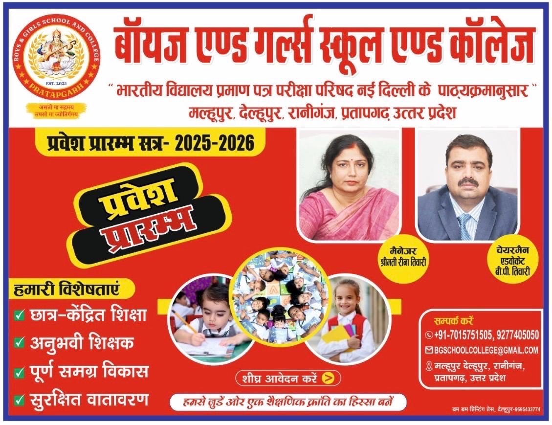 प्रतापगढ़ – ब्वायज एंड गर्ल स्कूल एंड कालेज के चेयरमैन विन्ध्येश्वरी प्रसाद तिवारी( पिंटू तिवारी) ने बताया कि ब्वायज एंड गर्ल स्कूल एंड कालेज मल्हूपुर रानीगंज प्रतापगढ़ में प्रवेश प्रारंभ हो गया है और पन्द्रह अप्रैल से क्लास शुरू हो जायेगी / प्रसिद्ध समाजसेवी विन्ध्येश्वरी प्रसाद तिवारी ने कहा कि मेरी सोच रही है कि क्षेत्र के बच्चों को प्रयागराज और लखनऊ जैसी शिक्षा मिले क्योंकि क्षेत्र में देश प्रदेश और जिला लेबल का कोई स्कूल नहीं है और शिक्षा को लेकर अभिभावक वर्ग को लंबे समय से एक अच्छे शिक्षण संस्थान का इंतजार था, ब्वायज एंड गर्ल स्कूल एंड कालेज के चेयरमैन विन्ध्येश्वरी प्रसाद तिवारी (पिंटू तिवारी) ने कहा कि मै एक किसान परिवार हूं और किसानों, मजदूरों को उनके बजट में उनके बच्चों को अच्छी शिक्षा उपलब्ध कराने के उद्देश्य से हम ब्वायज एंड गर्ल स्कूल एंड कालेज की बुनियाद रखे हैं मेरा मूल उद्देश्य है कि चाहे वह रिक्शा चालक, ईट भट्ठा मजदूर हो किसी भी जाति धर्म का हो उन सभी को प्रयागराज और लखनऊ जैसी बेहतर शिक्षा मिले और मै इस स्कूल में स्वीमिंगपूल, स्पोर्ट्स, राइफल शूटिंग , लैब जैसी सुविधाएं दे रहा हूं/ ब्वायज एंड गर्ल स्कूल एंड कालेज की मैनेजर रीना तिवारी ने बताया कि जो सुविधाएं देश के नंबर वन स्कूलों में होगी वह सुविधाएं आपको ब्वायज एंड गर्ल स्कूल एंड कालेज में मिलेगी, मैनेजर रीना तिवारी ने कहा कि कुशल और अनुभवी शिक्षक और जिम्मेदार स्टाफ के साथ हम पन्द्रह अप्रैल से संस्कार पूर्ण शिक्षा को लेकर पूरी तरह तैयार है।