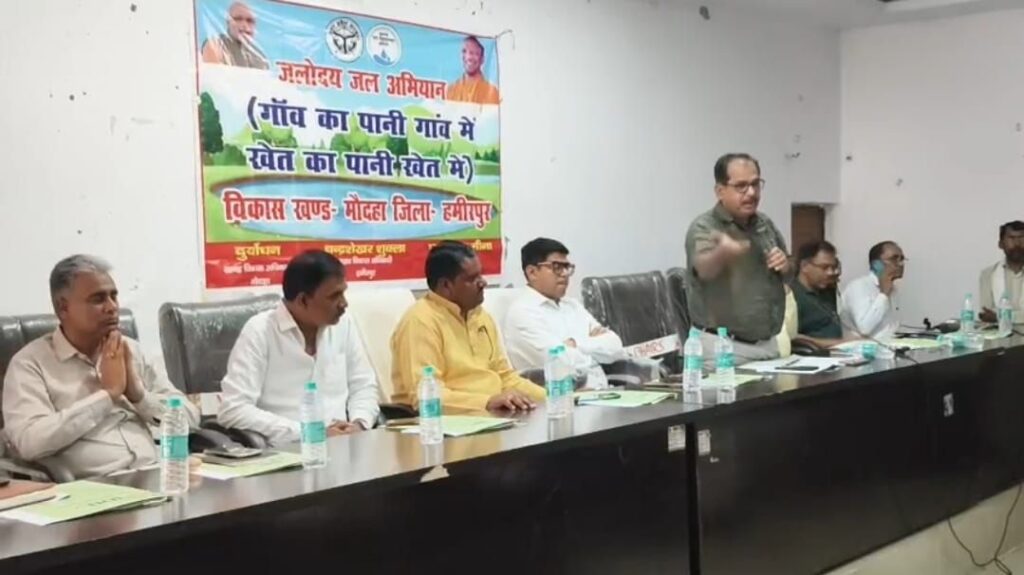 मौदहा(हमीरपुर )एक जनपद एक नदी अभियान में हमीरपुर जनपद के मौदहा क्षेत्र की चंद्रावल नदी के काया कल्प को लेकर गुरूवार को ब्लाक सभागार में जलोदय जल अभियान में गाँव का पानी गाँव में, खेत का पानी खेत में को लेकर जिलाधिकारी घनश्याम मीणा की अध्यक्षता में गोष्ठी का आयोजन किया गया l