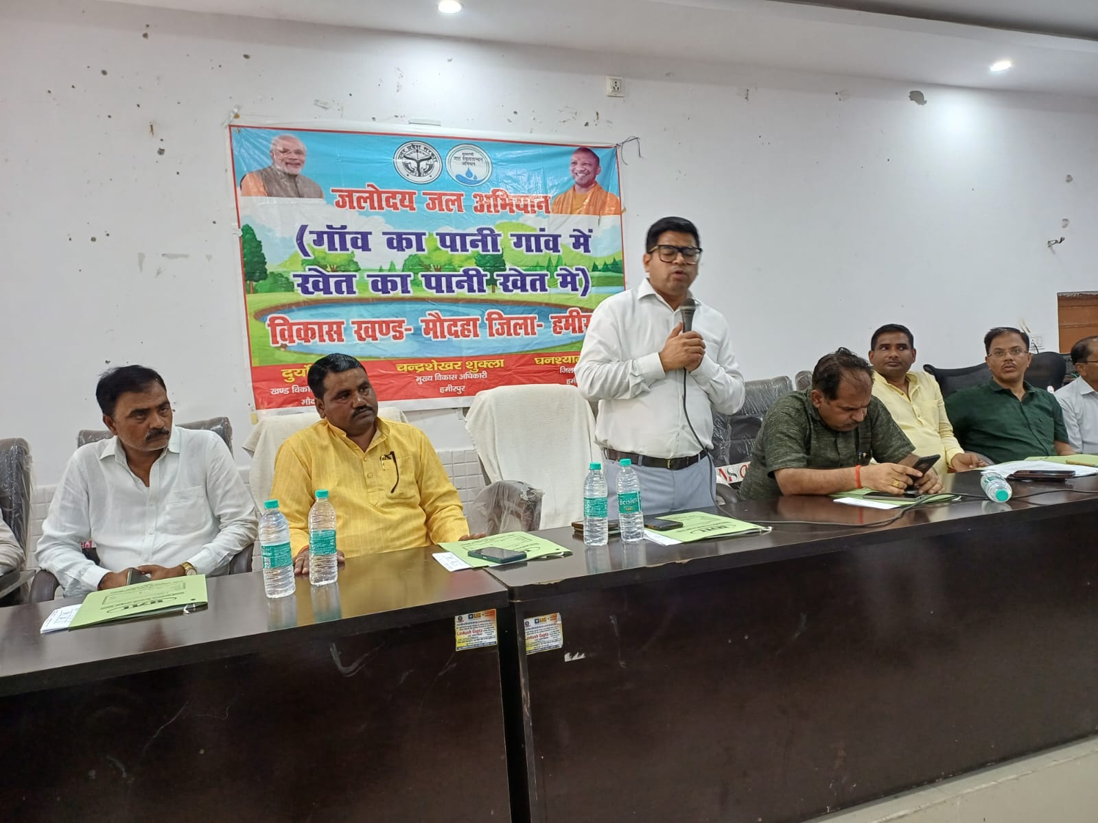 मौदहा(हमीरपुर )एक जनपद एक नदी अभियान में हमीरपुर जनपद के मौदहा क्षेत्र की चंद्रावल नदी के काया कल्प को लेकर गुरूवार को ब्लाक सभागार में जलोदय जल अभियान में गाँव का पानी गाँव में, खेत का पानी खेत में को लेकर जिलाधिकारी घनश्याम मीणा की अध्यक्षता में गोष्ठी का आयोजन किया गया l