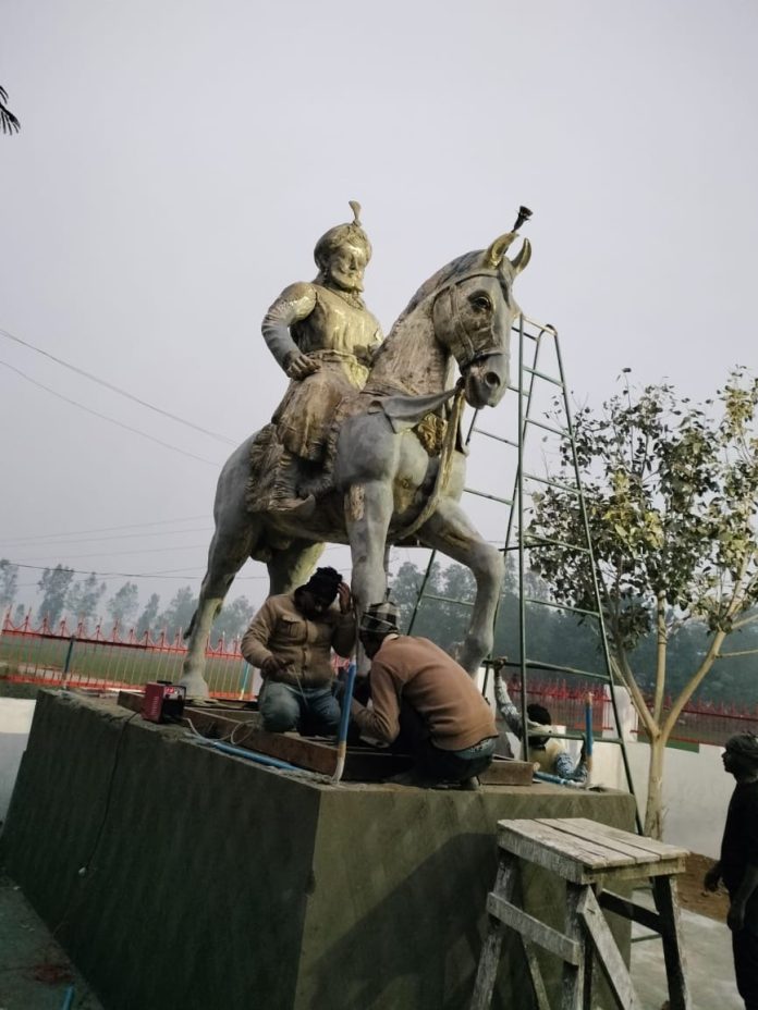 जगतपुर, रायबरेली, राना पार्क पहुंची 1857 महासंग्राम के क्रांतिकारी सेनानायक राना बेनी माधव सिंह की अश्व पर सवार आदम कद प्रतिमा।