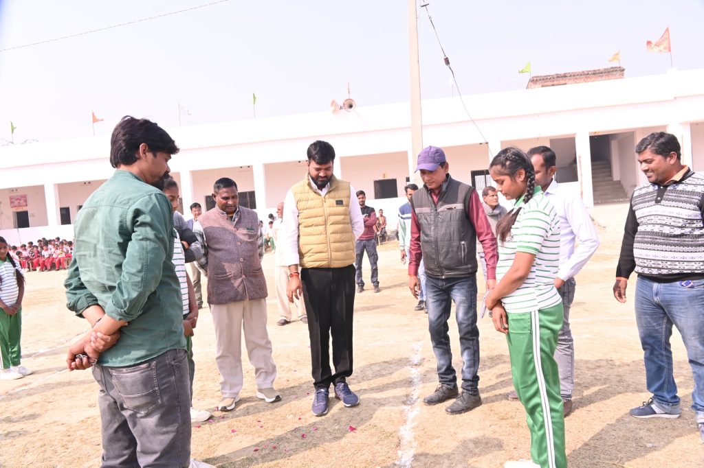 डलमऊ रायबरेली – बच्चों को शिक्षा के साथ खेलकूद में निपुण बनाने के लिए तथा शारीरिक रूप से स्वस्थ रखने के लिए डलमऊ क्षेत्र के जोहवा नटकी गांव स्थित एस.एन.जे.एच.(एस. वी.आई.कांवेंट स्कूल) विद्यालय में शीतकालीन वार्षिक खेलकूद प्रतियोगिता का आयोजन किया गया। जिसमें विद्यालय की छात्र-छात्राओं ने बढ़-चढ़कर हिस्सा लियाखेलकूद प्रतियोगिता का शुभारंभ मुख्य अतिथि समाजसेवी विकास सिंह ने फीता काटकर किया। विद्यालय प्रबंधक शिव कांची मौर्य एवं प्रधानाचार्य रमेश यादव व विमल मौर्या ने समाजसेवी विकास सिंह का माला पहनाकर स्वागत किया।