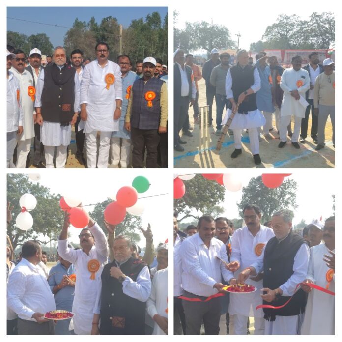 रायबरेली– जनपद के गुरुबख्शगंज क्षेत्र के अंतर्गत गन्ना काटा मैदान में पंडित दीनदयाल उपाध्याय स्मारक अंतर प्रांतीय क्रिकेट प्रतियोगिता 2026 के पांचवें संस्करण का किया गया भव्य शुभारंभ। लगभग 16 टीमों ने लिया भाग।कार्यक्रम के मुख्य अतिथि के तौर पर पहुंचे पूर्व एमएलसी राजा राकेश प्रताप सिंह पंडित दीनदयाल उपाध्याय की तस्वीर में पुष्प अर्पित किया उसके बाद ,कार्यक्रम के मुख्य आयोजक और समाजसेवी रहे पूर्व ब्लाक प्रमुख उमेश प्रताप सिंह व मुख्य अतिथि के द्वारा फीता काटकर टूर्नामेंट का किया गया उद्घाटन। वही हजारों की संख्या में मैच को देखने के लिए दर्शकों की उमड़ी भीड़। आपको बताते चले रायबरेली का यह ऐतिहासिक क्रिकेट हर साल सत्ताँव ग्राम के मैदान गन्ना काटा में कराया जाता है। वही मीडिया से बातचीत करते हुए पूर्व ब्लाक प्रमुख ने बताया विजेता टीम को विजय होने पर 251000 रुपए की राशि, वही उपविजेता टीम को 151000 की राशि और मैन ऑफ द सीरीज हीरो मोटरसाइकिल दी जाएगी।,साथ ही साथ ये क्रिकेट का खेल ग्रामीण अंचलों को युवाओ को बढ़ावा देगा वही पूर्व ब्लॉक् प्रमुख ने मीडिया को बताया की हम लोग गांव मे जमीन तलाश रहे हैं ताकि गांव मे ही एक भव्य क्रिकेट स्टेडियम का शुभारंभ हो सके क्योंकि आने वाले नौजवान युवक खासतौर से ग्रामीण क्षेत्रों में क्रिकेट को लेकर काफी उत्साहित रहते है वही कोशिश हमारी यही है कि जल्द से जल्द जमीन तलाश कर क्रिकेट मैदान बनाया जाए। फिलहाल आज उद्घाटन के दिन पहले मैच जनपद अमेठी और उन्नाव जनपद के बीच 15 15 ओवर का खेला जाएगा। वही मुक्तिती के तौर पर पहुंचे पूर्व एमएलसी राकेश प्रताप सिंह,जगतपुर ब्लॉक प्रमुख दल बहादुर सिंह, दिनेश सिंह, वीरेंद्र सिंह के साथ-साथ कमेटी के सदस्य सुंदरम सिंह आशुतोष सिंह विवेक सिंह सहित भारी संख्या में लोग कार्यक्रम में मौजूद रहे