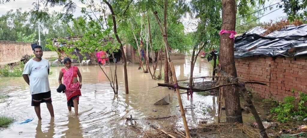 डलमऊ रायबरेली –शनिवार दोपहर में हुई झमाझम बारिश से जहां किसानों को राहत मिली वहीं पर तहसील क्षेत्र के सुरसना गांव में लोगों के घरों में पानी घुस गया रास्तों में जल जमाव की वजह से लोग घरों में कैद हो गए लगभग 2 घंटे हुई तेज बरसात के बाद लोगों का घरों से निकलना मुश्किल हो गया डलमऊ तहसील क्षेत्र के सुरसना गांव में बरसात ग्रामीणों के लिए आफत बनकर आ गई झुग्गी झोपड़ी में गुजर बस कर कर रहे लोगों के घरों में पानी घुस गया महिलाएं व बच्चे घरों में कैद हो गए..