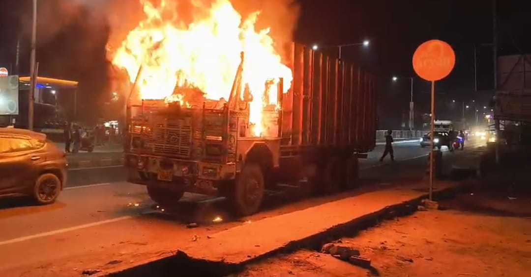 धुएं और तेज आवाज़ों से हाईवे पर हड़कंप मच गया, वाहन चालकों में दहशत फैल गई। वो तो गनीमत रही कि चालक ने समय रहते ट्रक से कूद कर अपनी जान बचा ली