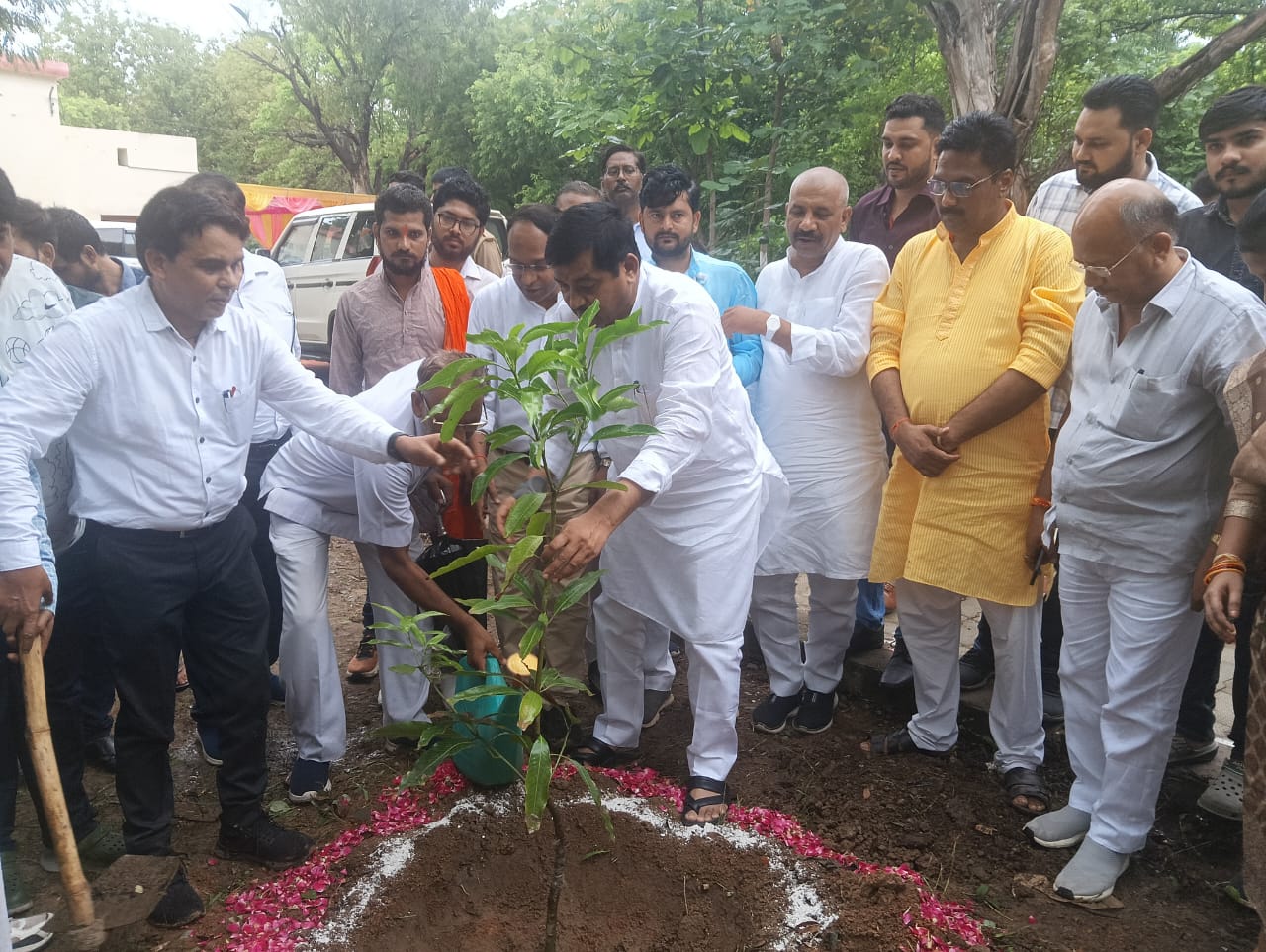 उन्होंने कहा कि जनसहभागिता से ही हम स्वच्छ व स्वस्थ पर्यावरण सृजित करने कि दिशा में आगे बढ़ सकते हैँ एक पेड़ माँ के नाम सिर्फ एक वृक्षारोपण कार्यक्रम नहीं है वल्कि यह समाज के प्रकृति के प्रति नई चेतना और सम्बेदना का परिचायक बन चुका है भाजपा जिलाध्यक्ष कल्लू सिंह राजपूत ने भाजपा जिला कार्यालय में वृक्षारोपण करते हुए कहा कि माँ ने जीवन दिया , पेड़ जीवन को जीने का आधार देते हैँ दोनों नि: स्वार्थ व अमूल्य है इस वन महोत्सव पर मन को एक नया जीवन समर्पित करें l एक पेड़ माँ के नाम प्रेम और प्रकृति का आपसी मिलन है l पर्यावरण संतुलन सामूहिक प्रयास से ही संभव है इसलिए प्रत्येक नागरिक को पौधरोपण के इस वृहद अभियान में जुड़ना चाहिए l पूर्व जिला उपाध्यक्ष उत्तम सक्सेना ने शहर के सेक्टर 9 के बूथ 121 में वृक्षारोपण करते हुए कहा कि वृक्ष हमारे जीवन का मूल आधार है प्रत्येक व्यक्ति को वर्ष में कम से कम एक पौधा अपनी माँ के नाम अवश्य लगाना चाहिए l यह कार्य न केवल पर्यावरण संरक्षण का माध्यम है वल्कि माँ का कर्ज चुकाने की एक भावनात्मक अभिव्यक्ति है l नगर पंचायत बबेरू अध्यक्ष ने अपनी नगर पंचायत परिसर में , ब्लाक प्रमुख बड़ोखर स्वर्ण सिंह सोनू ने बड़ोखर ब्लाक के ग्राम दुरेडी में, क्षेत्रीय सह संयोजक सुधीर त्रिवेदी ने ग्राम लुकतरा मे, क्षेत्रीय मंत्री राजेश सेन ने नाव चेतना पार्क नवाब टैंक में नीम , कदम्ब, जामुन, आवला, अमरुद आदि का पौधरोपण किया l इसी प्रकार नरैनी विधायक ओममणि वर्मा ने नरैनी विधानसभा के ब्लाक परिसर नरैनी में वृक्षारोपण किया l इसी प्रकार जिले के सभी बूथों में मण्डल अध्यक्ष व बूथ अध्यक्ष के नेतृत्व में वृक्षारोपण किया गया l